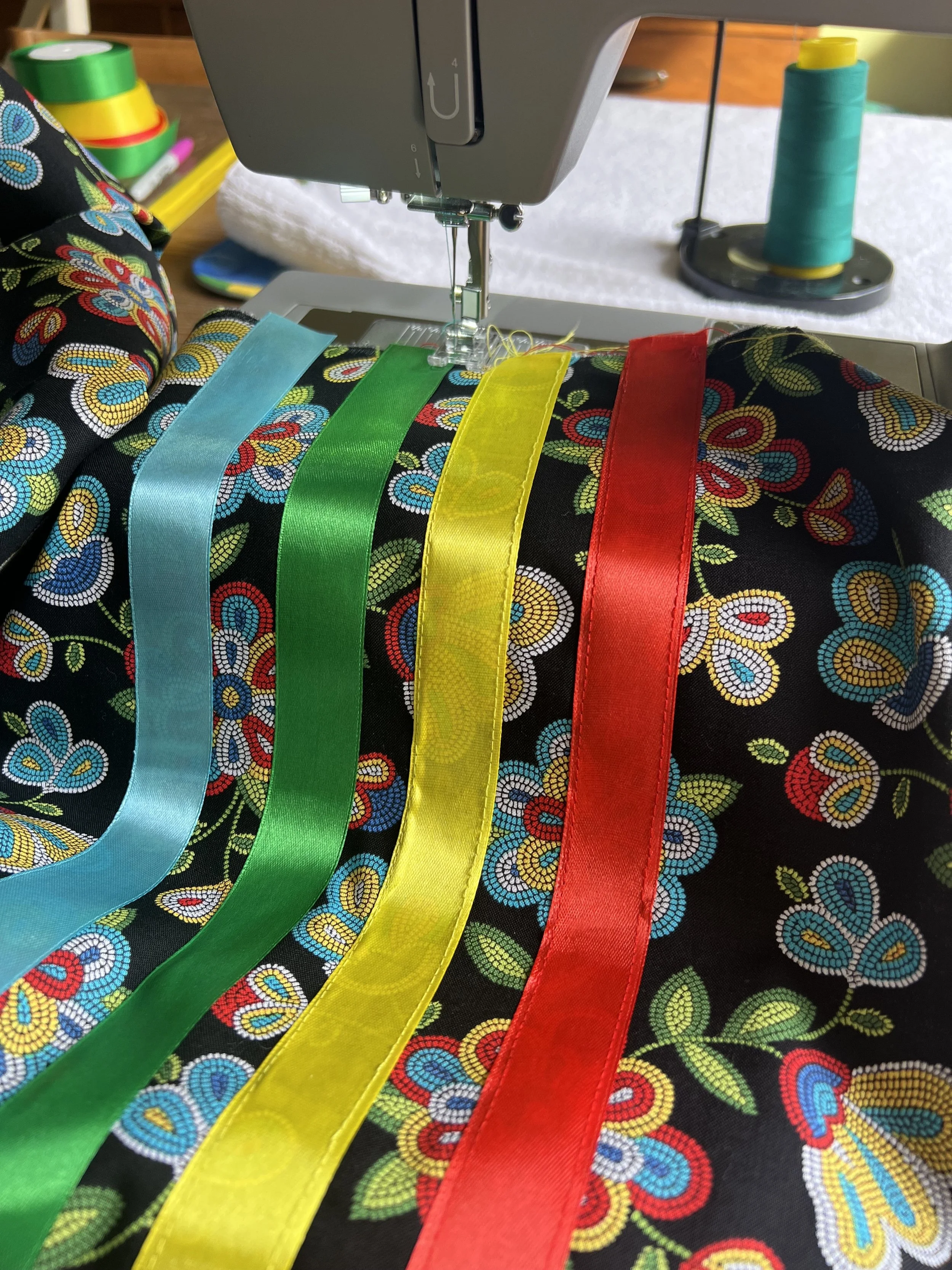 I am a traditional dancer, a mother and I love to sew and make traditional skirts or ribbon shirts for my son and community members when needed.